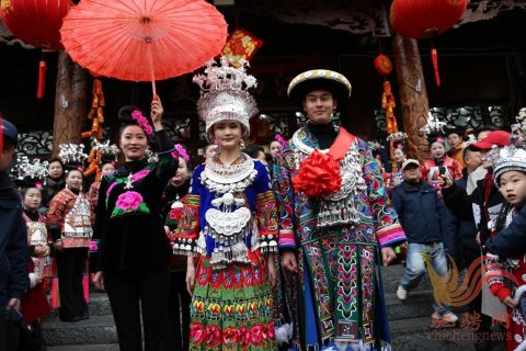 大年初二:游客在西江苗寨体验原生态“苗族版”独特婚俗