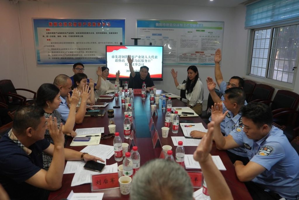 今年6月27日,一场特殊的民主议事会在衡阳市先进钢铁材料产业链人大代表联络站召开。蒸湘区人大常委会党组书记、主任彭东阳组织相关单位负责人进驻联络站,与人大代表、企业代表、居民代表一同研讨“衡钢周边道路交通拥堵”解决方案。