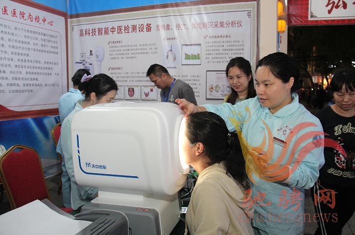 “将下巴放在这个位置,把舌头露出来,仪器会对舌质、舌苔的颜色、形态、裂纹、齿痕等多种特征进行数字化提取,不到一分钟,就会分析出个人健康情况,给出改善建议。” 在智行健康区,来自县中医医院医生耐心地为市民游客讲解“舌脉象、经穴、体质辨识采集分析仪”的使用流程。经过亲身体验后,刘女士感叹道,“没想到‘望、闻、问、切’的传统中医诊法也有了新的‘呈现形式’。”
