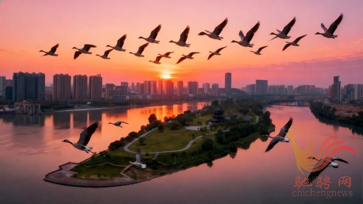 东洲岛首次重现“潇湘八景·平沙落雁”,见证76只大雁振翅齐飞,掠过碧水蓝天,以天地为画卷,共绘盛世祥瑞!