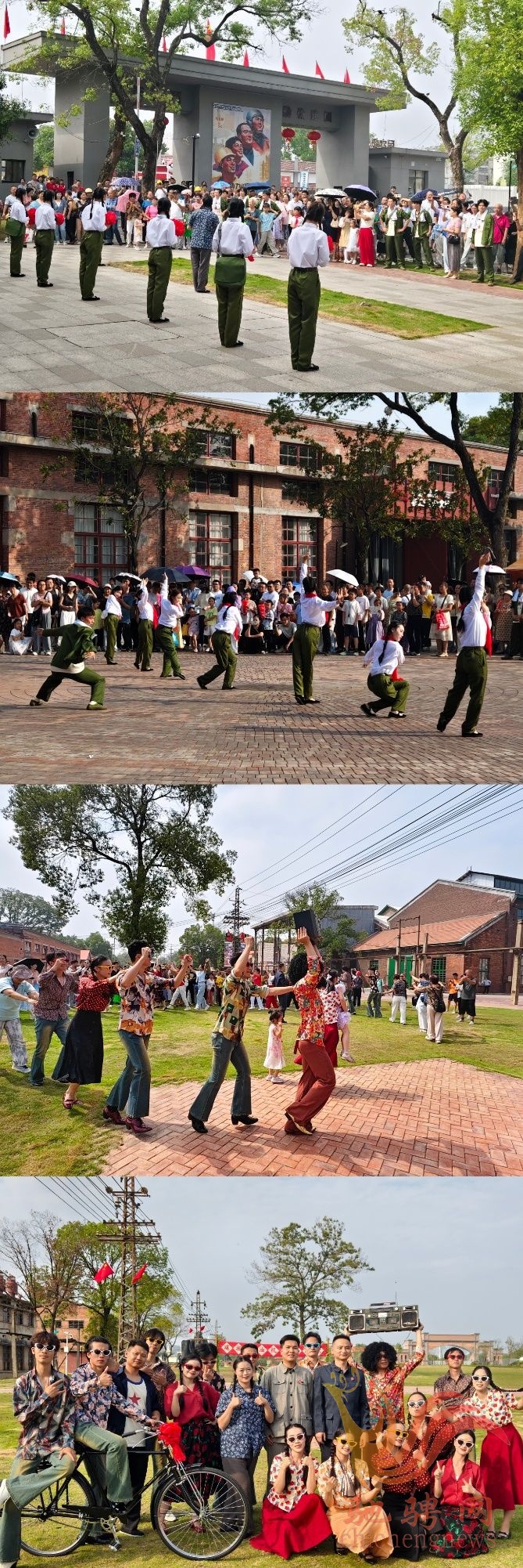 上午 10 时,《到衡阳当工人去》沉浸式舞剧准时开演,整个街区瞬间化作流动的 “时空剧场”。“厂长”热情洋溢地致欢迎词,“茶水摊王大姐” 端着搪瓷杯送上凉茶,“报摊小哥” 分发印着 “生产任务” 的仿旧报纸,游客们不自觉地跟随着演员的脚步穿梭于建湘工业文化街区的历史建筑间。