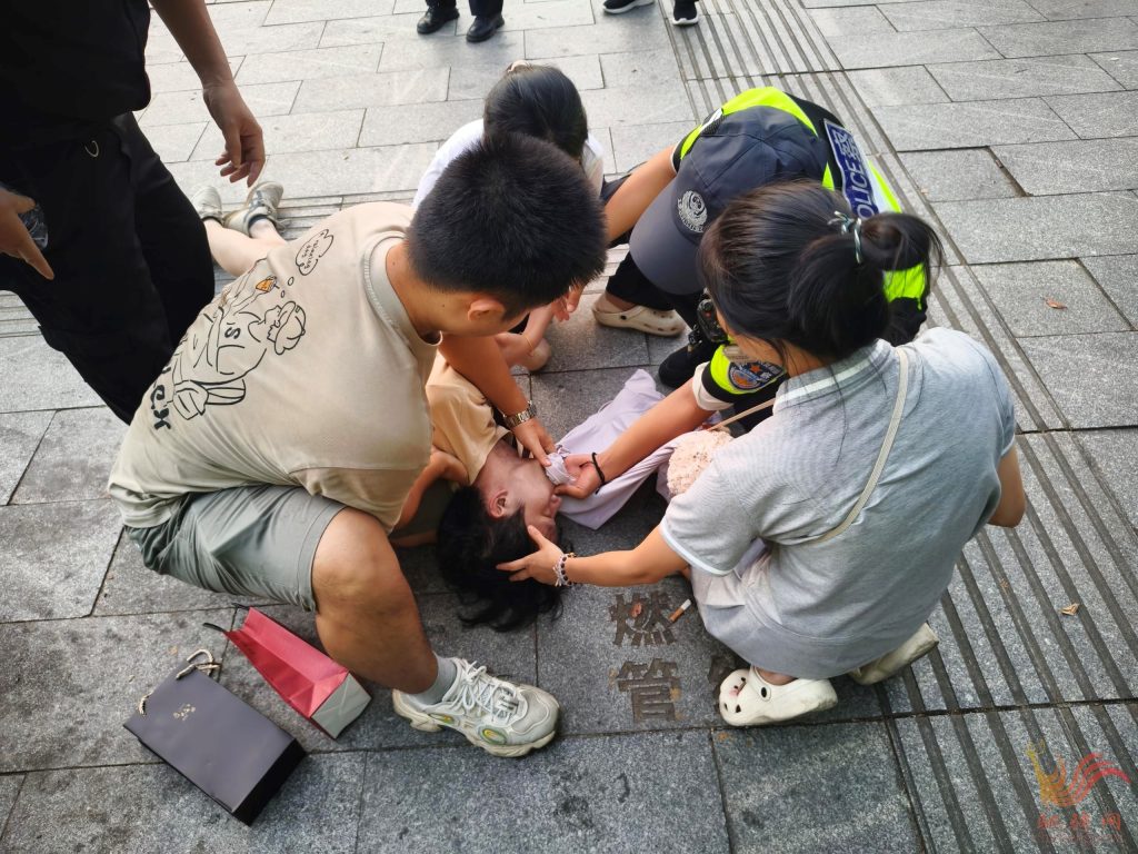 国庆中秋假期,湖南省衡阳市南岳景区人头攒动。10月3日下午18时许,在锦绣南山路口,一名游客突然倒地抽搐、不省人事,情况万分危急!