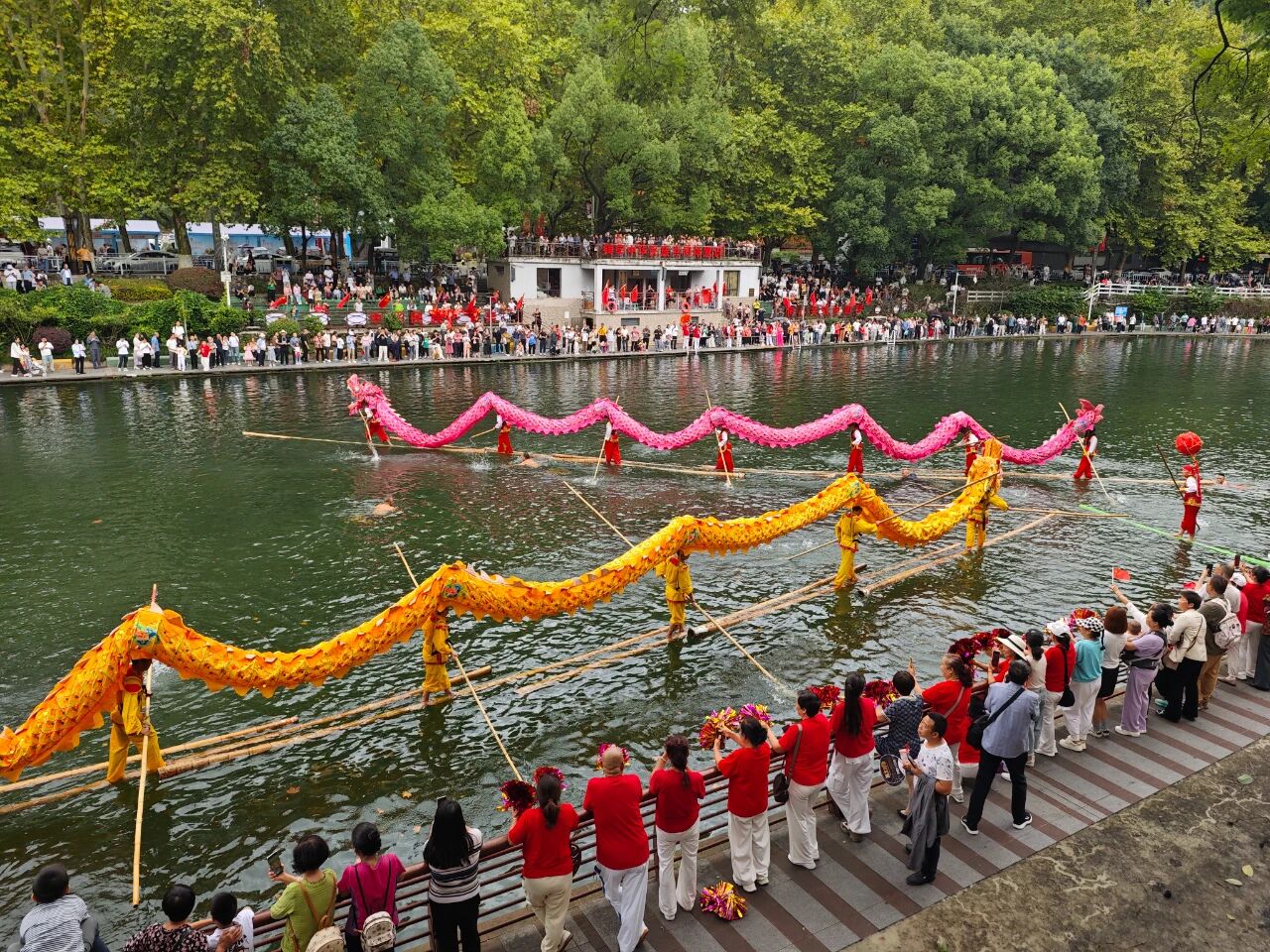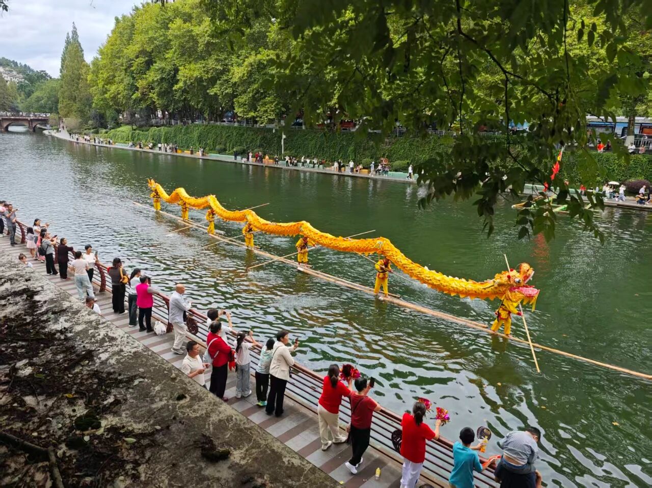 国庆中秋节快乐期间,暨“醉美遵义.激流‘竹’梦”2025年全国独竹漂公开赛在遵义举行之际,又逢“大美中国,游走神州”的美好日子里,贵州遵义以历史文化名城之誉,开展了丰富多彩的文化活动,赢得广大游客良好赞赏。在遵义主城区湘江河畔,一场尤为抢眼的独竹漂水上运动项目活动带来文化原生态、情景相融的演绎、独竹漂与传统舞龙技艺巧妙融合,展现出非遗文化的独特魅力,突显了表演者的精彩技艺;情景式表演与多彩文艺展示给来自四面八方旅客和广大观众留下的深刻印象。