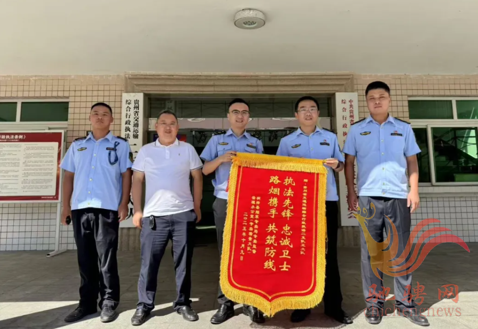 “感谢五大队协助我们打击非法运输烟草的车辆,规范了烟草市场,帮我们办了实事解了难题”。10月9日,省交通执法二支队五大队收到桐梓县烟草专卖局赠送的锦旗。锦旗上“执法先锋 忠诚卫士 路烟携手 共筑防线”十六字,表达了对五大队高效执法服务的高度认可。