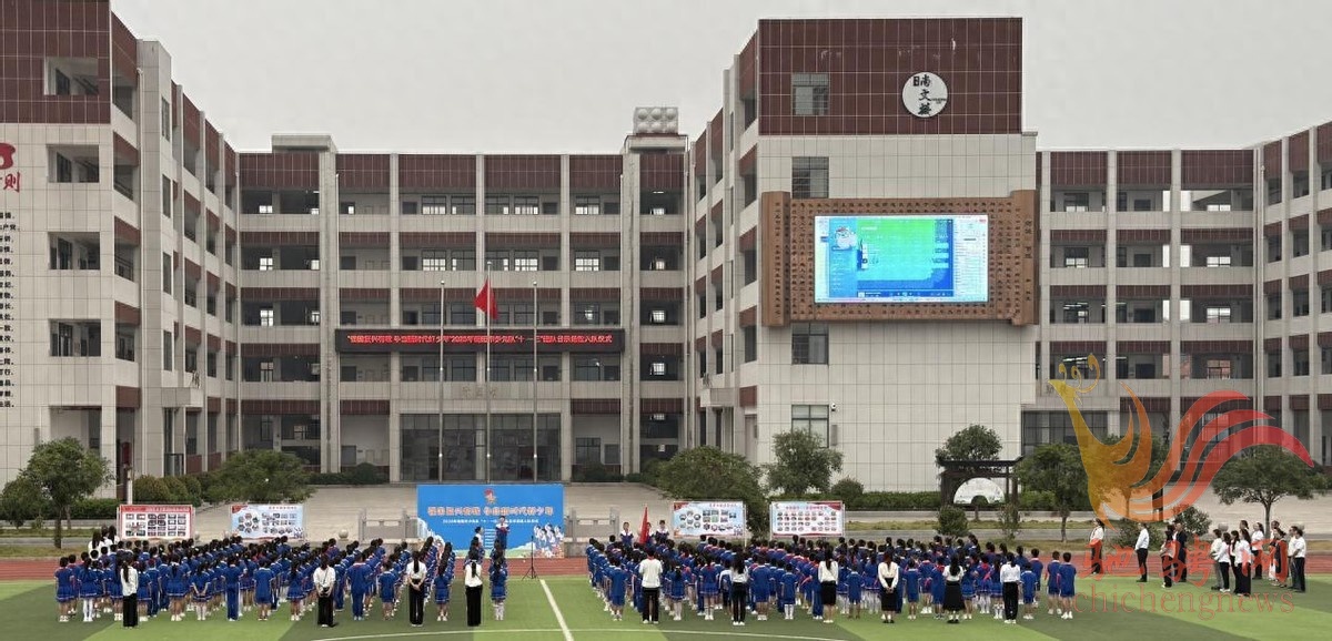 仪式在激昂的出旗曲中拉开帷幕,全体人员齐唱《中国少年先锋队队歌》,嘹亮歌声彰显着新时代少年的蓬勃朝气。
