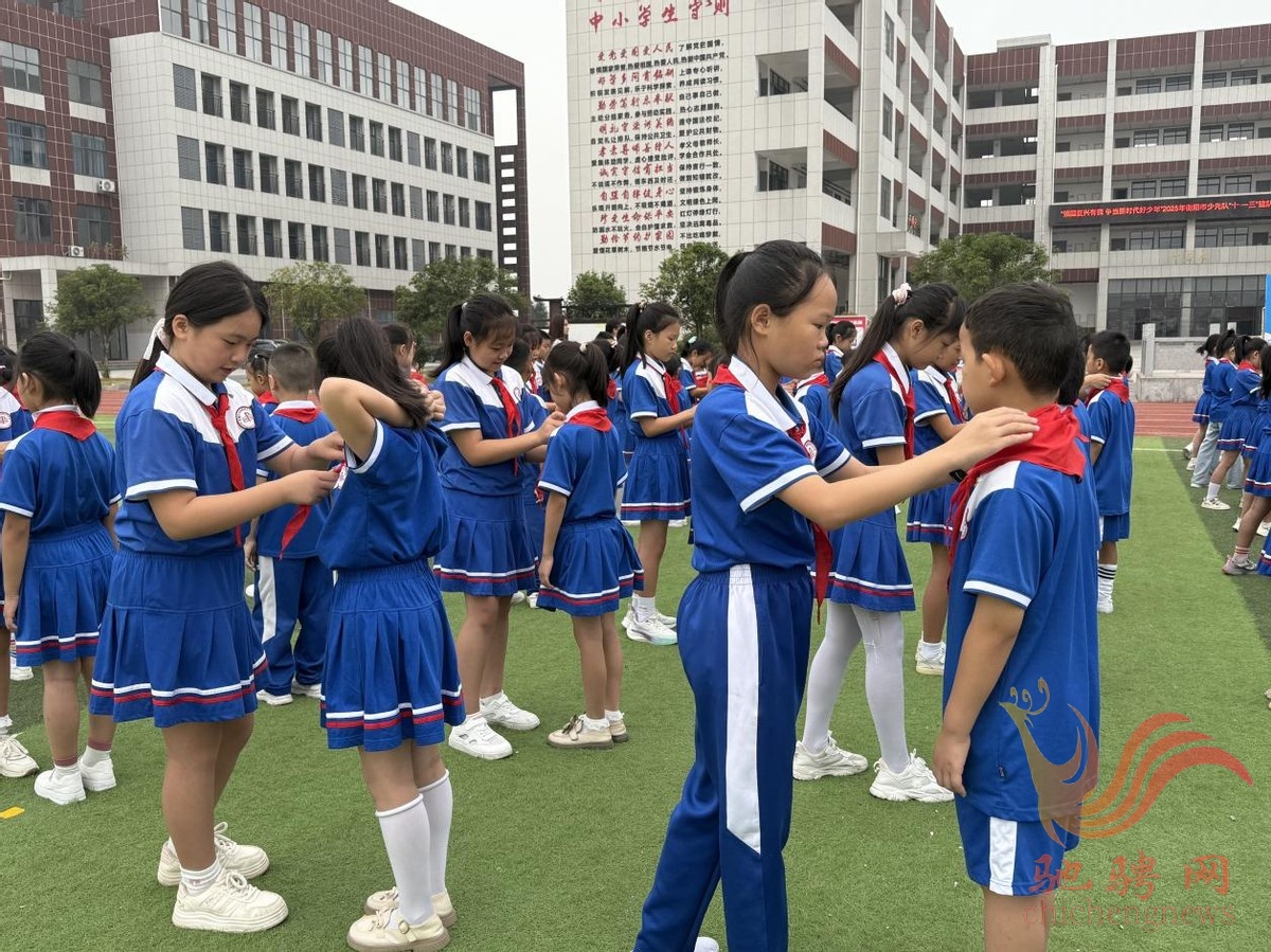 仪式严格按照《中国少年先锋队入队仪式仪程规范(试行)》进行,老队员为新队员郑重佩戴红领巾,红色传承在互敬队礼中无声延续。新队员面向队旗庄严宣誓,老队员重温入队誓词,稚嫩而坚定的誓言响彻校园,表达着听党话、跟党走的坚定信念。新队员代表发言,分享成长感悟与责任担当。