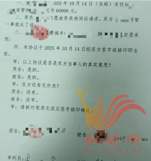 在法官的主持下,双方当庭签署调解协议,长辈随即将代管的6万元钱款当场返还给晚辈,这场家庭矛盾在法庭内得到圆满解决。