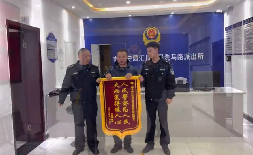 第二日,送货员专程带着锦旗来到洗马路派出所,将写有“人民警察为人民、失而复得暖人心”的锦旗送到民警手中,以此表达对民警高效履职、为其挽回经济损失的诚挚谢意。