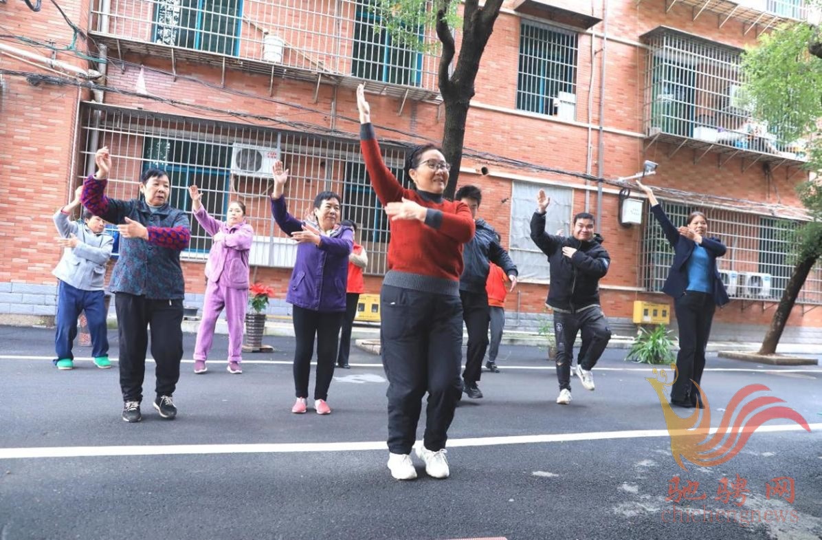 红湘街道学院路社区养老服务中心,老人们在做操健身。