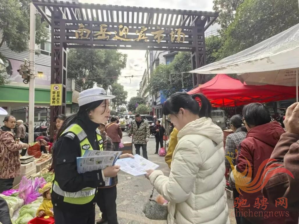 随着第十四个 122 “全国交通安全日” 日益临近,为使 “文明交通,礼行天下” 的主题理念深入人心,11 月 20 日,衡阳市南岳区交警大队创新宣传方式,借助迎宾农贸市场的赶集日,在熙攘人流中设立特殊的 “宣传摊”,将交通安全知识融入市井烟火,为市民日常出行筑牢安全防线。