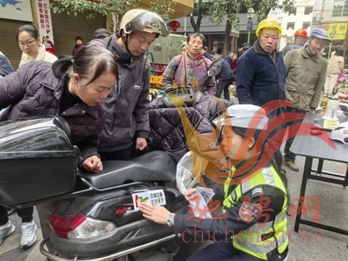 清晨,农贸市场内人声嘈杂、热闹非凡,交警在市场入口处设置的宣传展台格外引人注目。台上整齐摆放着图文并茂的宣传册、实用的反光贴以及安全头盔,瞬间吸引了过往市民的目光。考虑到市场内老年商户居多、骑行购物市民集中的特点,民警摒弃了传统照本宣科的宣传模式,采用通俗易懂的 “大白话” 讲解交通法规。民警结合本地典型事故案例,着重分析了电动车不戴头盔、逆行、闯红灯等行为的严重危害,同时向市民普及 “过路口提前 3 秒减速” 等简单易记的安全法则。