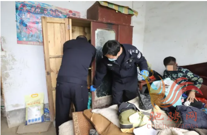 经民警详细询问宋大爷现金存放的位置,在征得宋大爷同意后,对其存放现金的卧室进行细致“查找”。