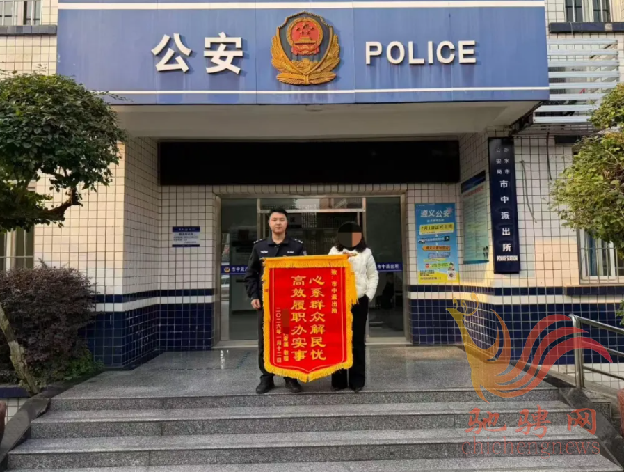 1月13日上午,群众方女士专程来到赤水市公安局市中中心派出所,将一面绣有“心系群众解民忧 高效履职办实事”的锦旗交到民警手中,言辞恳切地表达谢意。