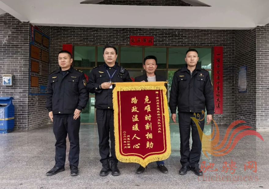 3天后,闵师傅专程将一面锦旗送到六大队。锦旗上“危难时刻相助”的字样在阳光下格外醒目。