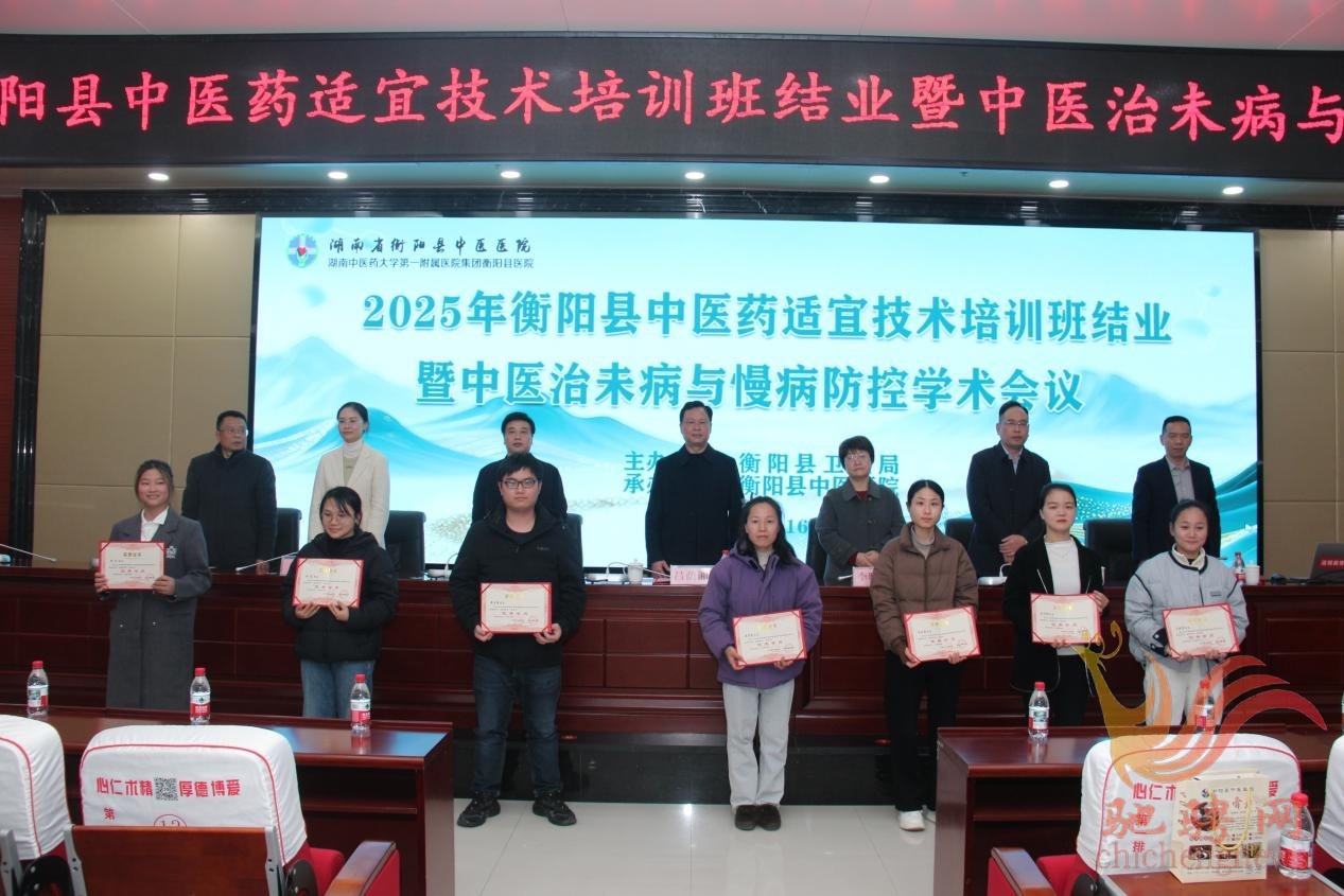 1 月 16 日下午,衡阳县在县中医医院四楼会议室举行2025 年全县中医药适宜技术培训班结业典礼暨中医治未病与慢病防控学术会议。湖南中医药大学一附院李晓屏教授,衡阳县卫健局党组书记、局长吕荫湘,县卫健局副局长刘晓军,县卫健局党组成员、副局长、县疾控局局长王捷,县中医医院党委书记夏良友、院长祝勇等领导出席会议,会议由县卫健局党组成员、副局长傅同生主持。