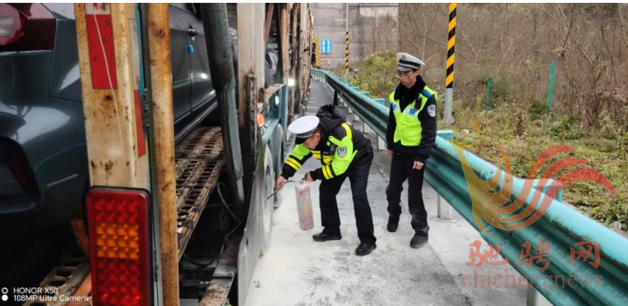 1月21日中午,遵义市公安局交管支队高速三大队民警巡逻至玉新高速172公里处,发现前方一辆货车后轮浓烟滚滚,已有起火迹象。民警立即拉响警笛、加速追赶,在隧道入口前成功将车辆拦停。