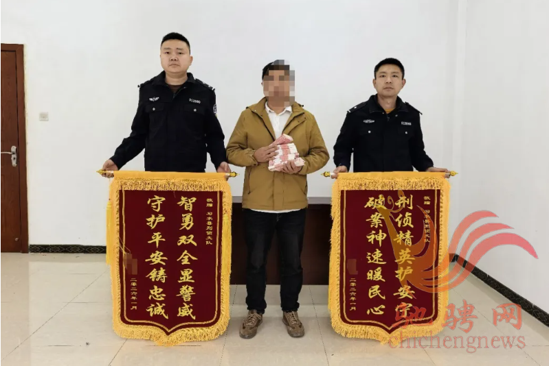 此前,刑侦大队接群众报警,称其工地上的电缆线被盗。接警后,民警立即开展侦查工作,通过深度研判、缜密侦查,成功抓获犯罪嫌疑人,并追回涉案资金15万余元。1月22日,刑侦大队将追回的赃款如数退还受害人。受害群众为表达谢意,向民警送上锦旗。