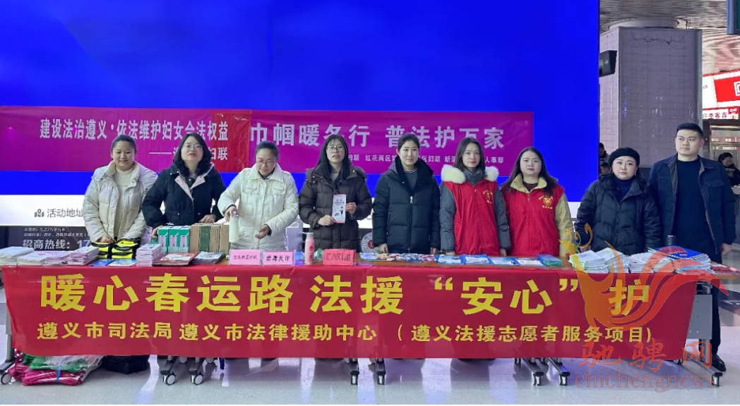为切实保障返乡务工人员合法权益,让春运归途更安心、更暖心,2026年春运首日,遵义市司法局组织公证、法律援助、志愿者律师、仲裁等专业力量,在高铁遵义站开展“暖心春运路 法援‘安心’护”主题宣传活动,守护群众过安心年。