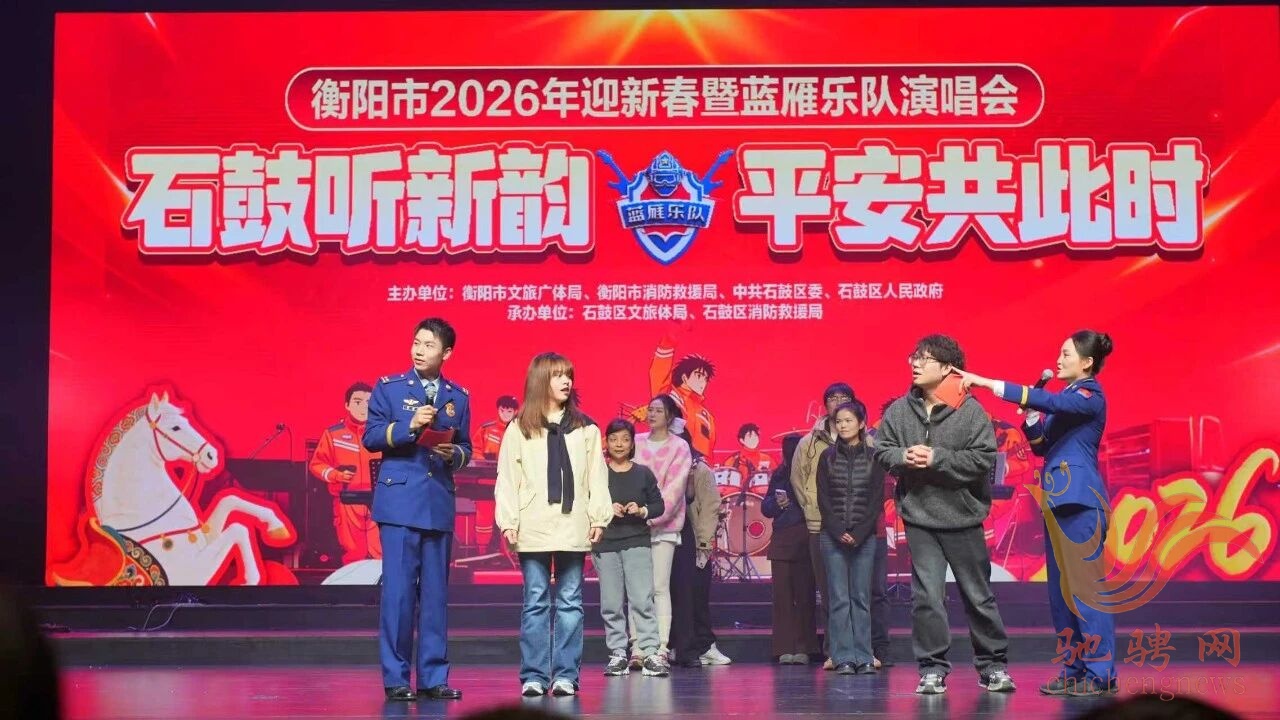 2 月 4 日晚,“石鼓听新韵 平安共此时” 衡阳市 2026 年迎新春暨蓝雁乐队演唱会在保利大剧院激情开唱。这场演唱会打破传统模式,将文化艺术表达与消防安全宣传深度融合,让安全知识与城市发展紧密相连,为市民带来一场别开生面的迎新盛宴。