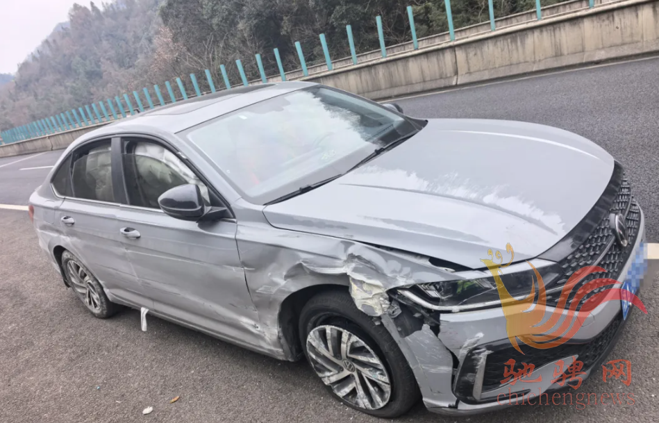1月28日上午10时50分许,遵义市公安局交通管理支队高速三大队接到驾驶人报警,称其驾驶小轿车沿玉新高速公路由石阡往新舟方向行驶,当行至凤冈南收费站前行约2公里的位置时发生单方事故,无人员伤亡,车辆受损较为严重,请出警处置。
