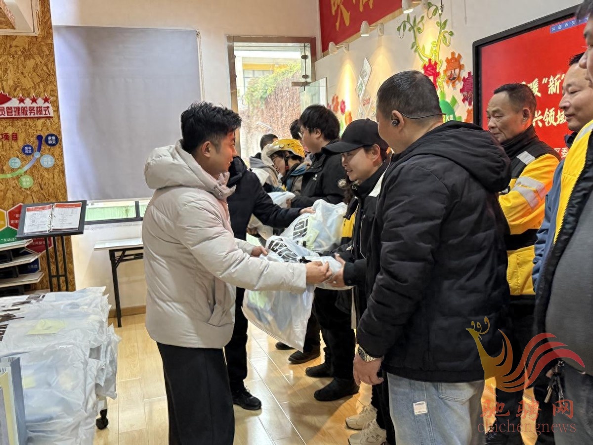 活动现场,工作人员与新就业群体亲切交流,详细询问他们的日常工作节奏和春节排班计划,叮嘱大家在寒冬奔波注意交通安全、做好防寒保暖,并提前向他们致以新春的美好祝福。一件件温暖的衣物,一袋袋装有保温杯、口罩、护手霜等实用物品的“新春大礼包”,凝聚着对新就业群体辛勤付出的肯定与敬意,让奔波的“暖城者”收获专属年味。