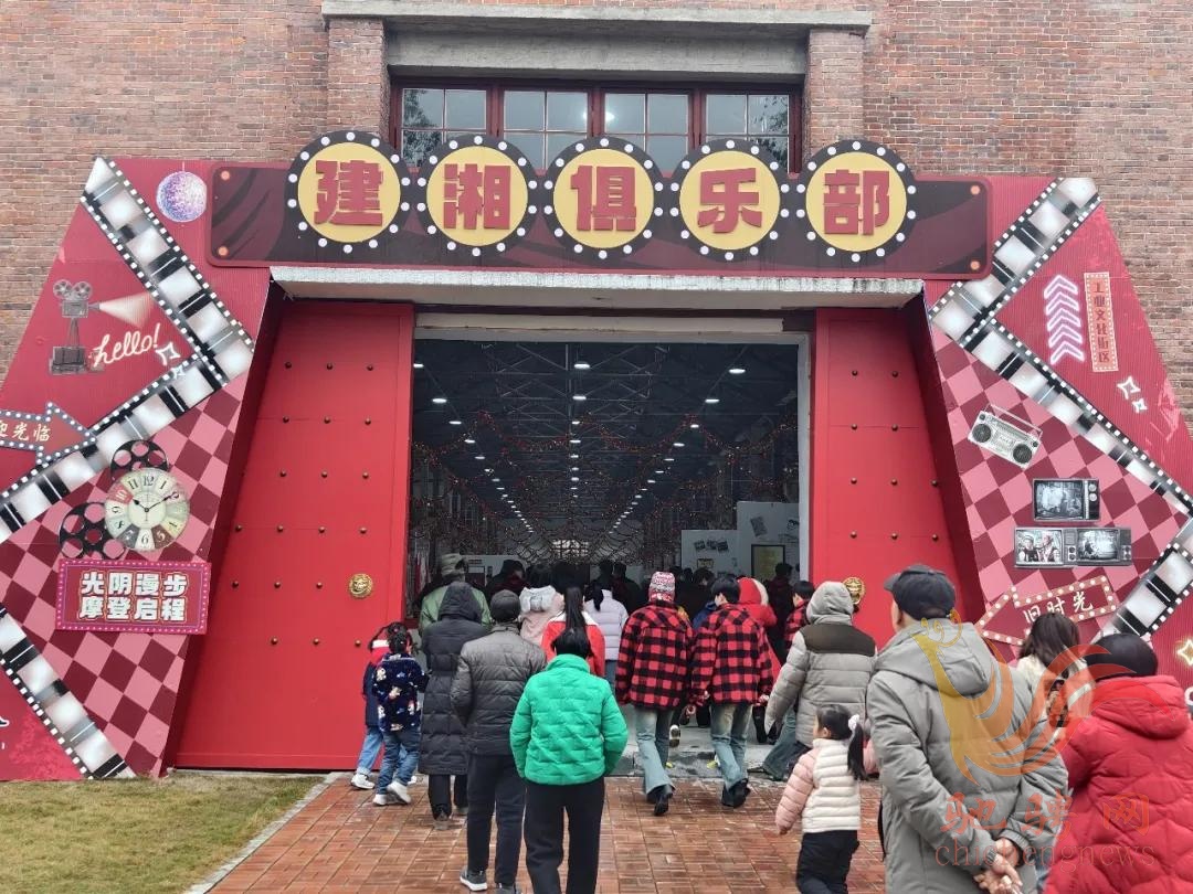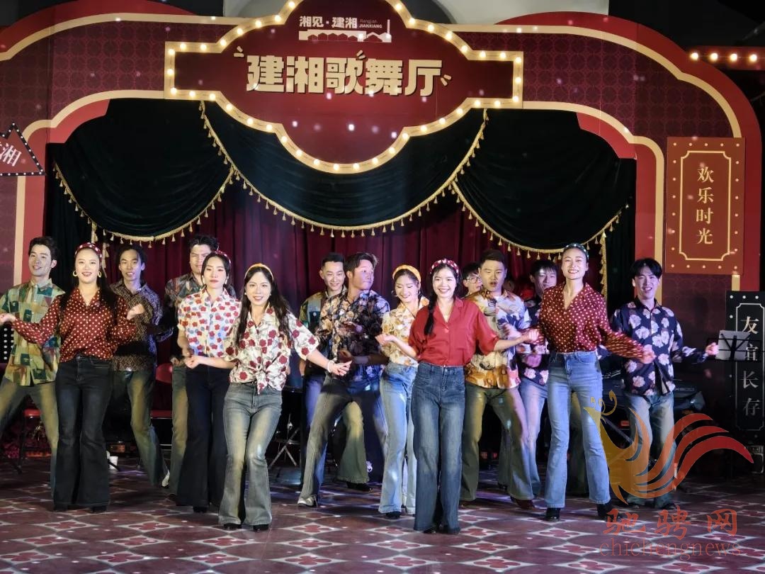 承载着几代建湘人青春记忆的建湘俱乐部,阔别多年,马年新春限时重启。上午十点,俱乐部内,原创沉浸式演艺《我在建湘过大年》准时上演。这出演艺,以建湘老厂区的真实生活为蓝本,通过复古的迪斯科服装、80年代的经典乐曲和灵动舞姿,生动再现了老一代产业工人在厂区过年、联欢的温情场景。