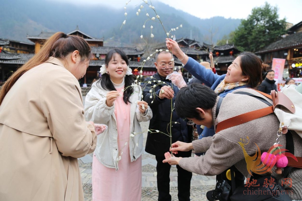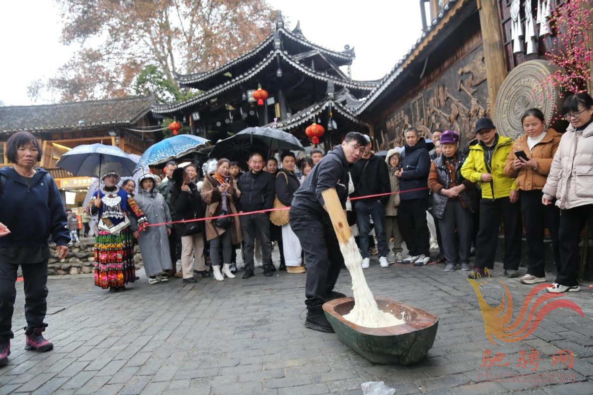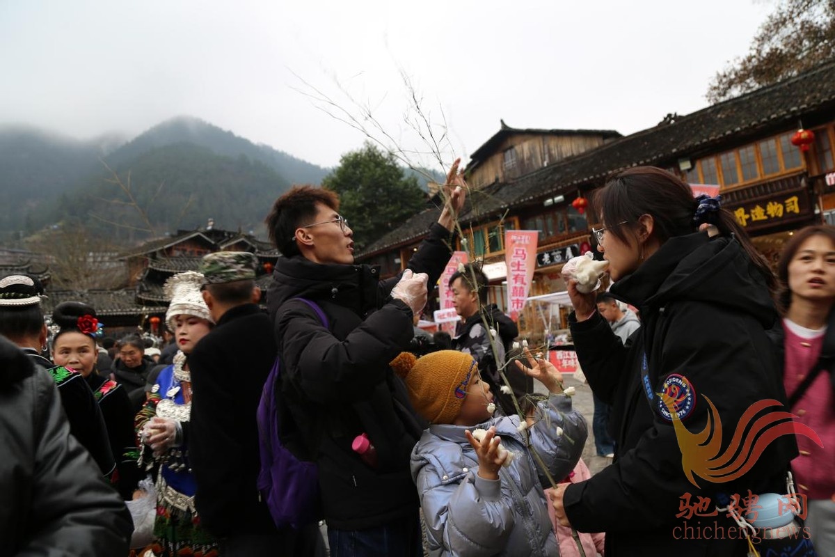 为庆祝传统新春佳节,营造西江千户苗寨浓浓的年味,2月20日,春节假期第六天(大年初四),当人们正沉寖在迎新春,庆新年欢声笑语的同时,一场游客“打糍粑·捏鸡仔粑”体验活动在西江千户苗寨隆重上演,吸引众多游客踊跃参与苗族“打糍粑”捏“鸡仔粑”体验活动,并纷纷拿起手机、相机、摄像机记录每个精彩瞬间,让来自全国各地的游客亲身体验和感受西江景区这一独特的“苗族版”春节浓浓的节日氛围。