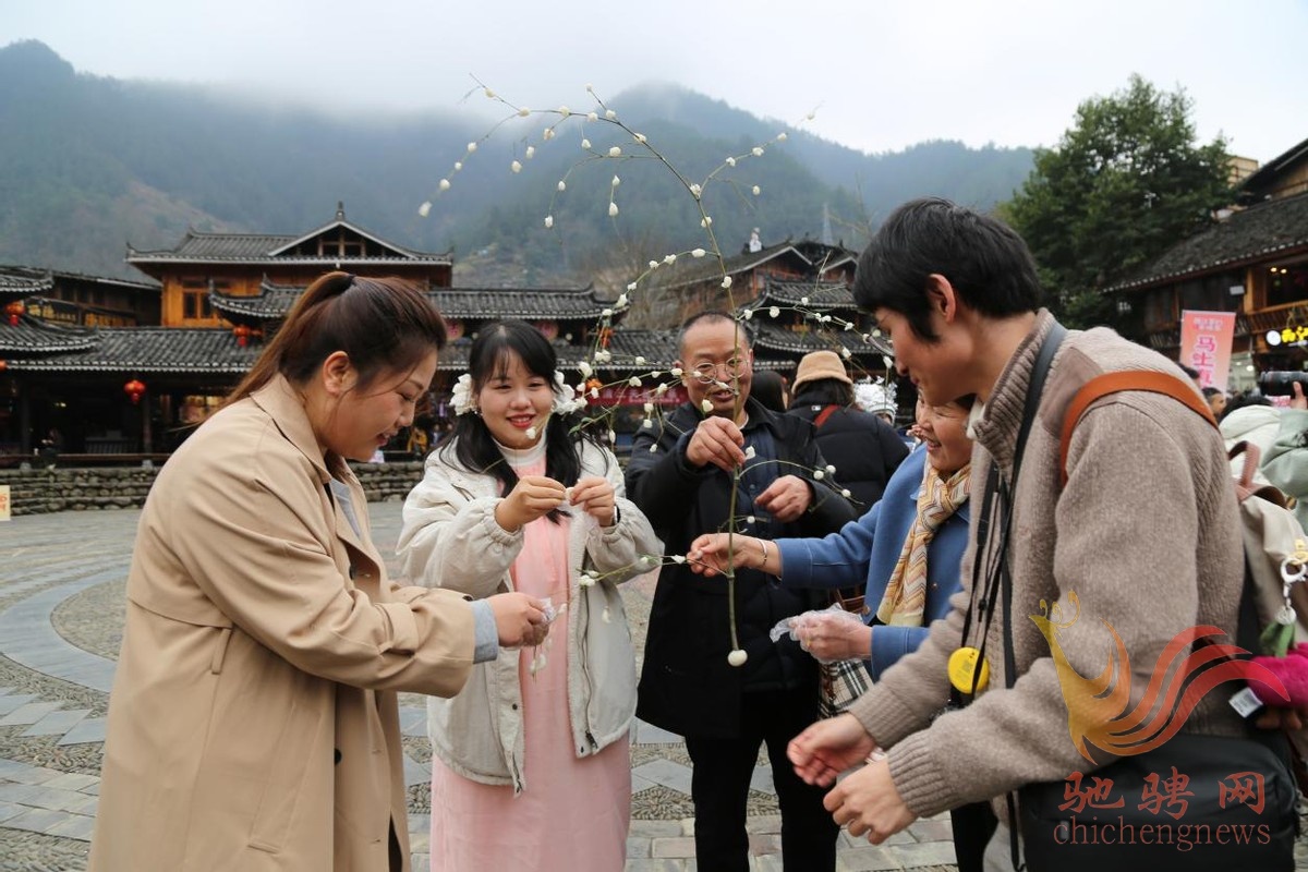 西江旅游集团公司利用大年初二、初四游客密集的契机,精心准备了一场别开生面的游客打糍粑捏鸡仔粑体验活动,增加苗寨活动内涵和浓浓的节日氛围。
