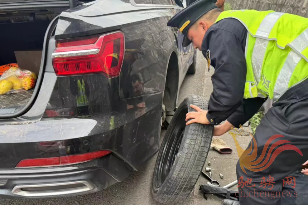 这一刻,执法车成了“燃油快递车”。(张彤)场景三 轮胎的“VIP护送服务”
