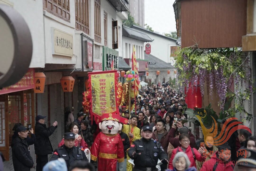 上午九时,伴随着激昂的锣鼓声,备受期待的“双龙双狮”巡游在回雁峰脚下准时启幕。金色的长龙与雄狮沿着福寿街蜿蜒腾跃,气势磅礴。巡游队伍所到之处,瞬间点燃了沿街市民与游客的热情,喝彩声、欢呼声此起彼伏,汇成一片欢乐的海洋。人们纷纷举起手机,争相记录这充满活力的瞬间。