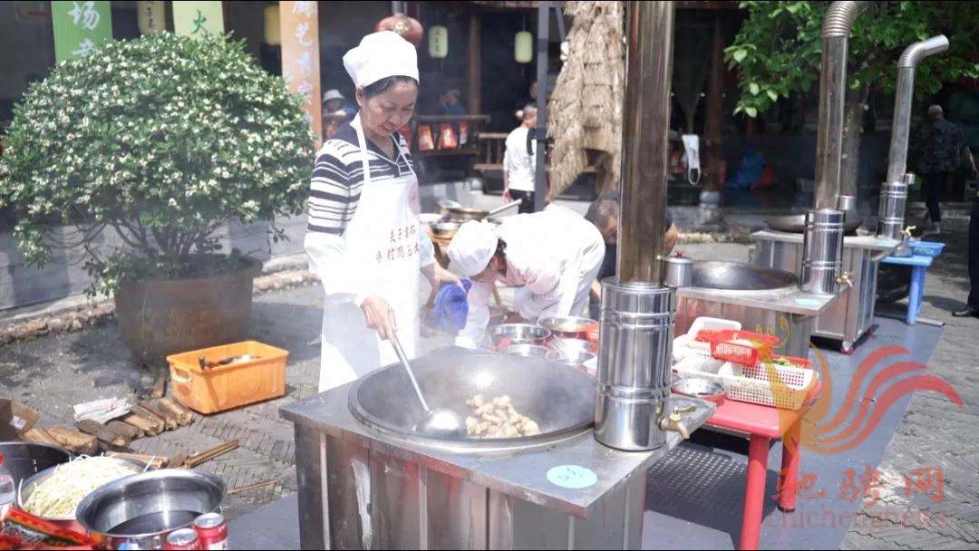 当天一早,赛场便被闻讯而来的市民和游客围得水泄不通。欢呼声、赞叹声与锅碗瓢盆的碰撞声交织成一片,热闹非凡。六位厨娘身着统一服装,精神抖擞,从容自信,一上场便迅速进入“战斗状态”。随着一声声“滋啦”爆响,家常食材在滚烫的铁锅中瞬间绽放魅力。点火、热锅、倒油、下料,动作行云流水、干脆利落,尽显乡村大厨的娴熟功底。