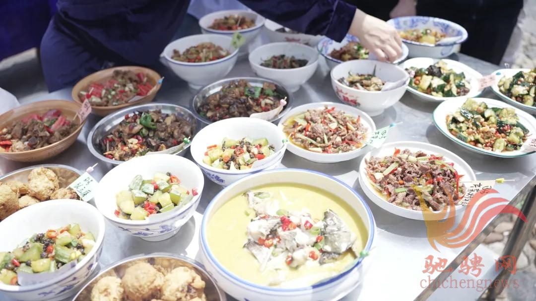赛场上,厨娘们各显神通,翻炒、焖炖、煎炸,十八般厨艺轮番上阵。不过多时,九道色香味俱全的农家硬菜依次出锅、整齐摆台——红的鲜亮、绿的清脆、黄的诱人,颜值与美味并存,瞬间成为全场焦点。
