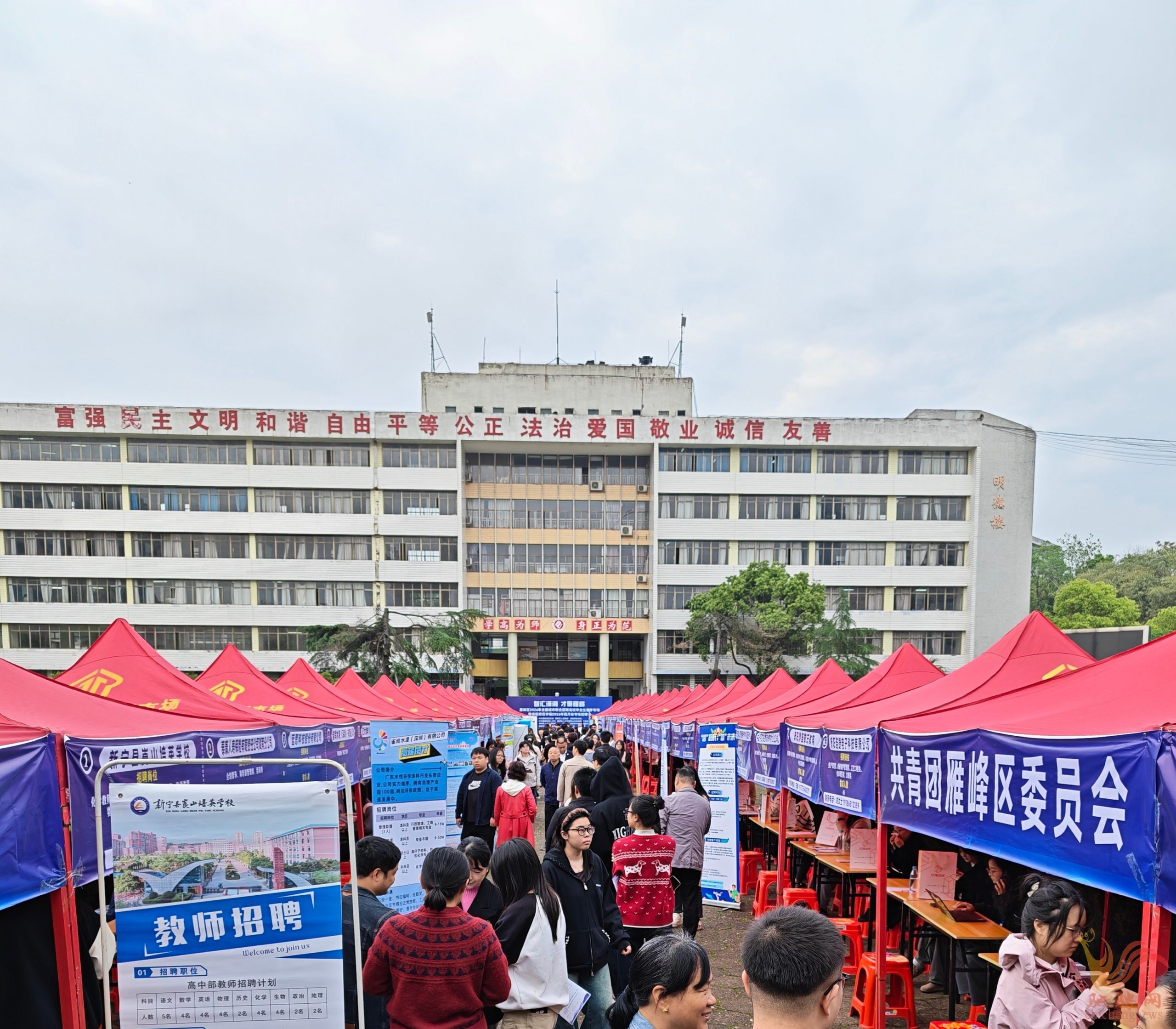 4 月 23 日上午,“智汇潇湘,才聚雁峰”衡阳市雁峰区 2026 年全国城市联合招聘高校毕业生春季专场暨衡阳师范学院四月专场招聘会,在衡阳师范学院西校区新世纪广场热闹开场。此次招聘会致力于搭建雁峰区校企精准对接平台,助力高校毕业生实现早就业、就好业。
